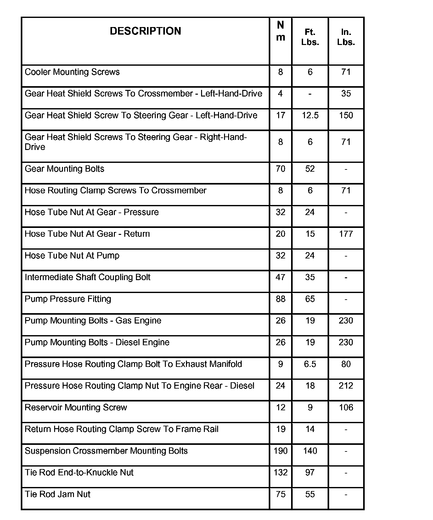 Torque Specifications: