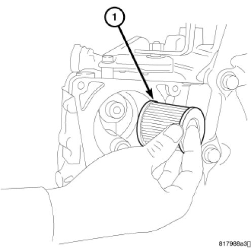 15. Remove the CVT fluid filter (1) from the transaxle case.