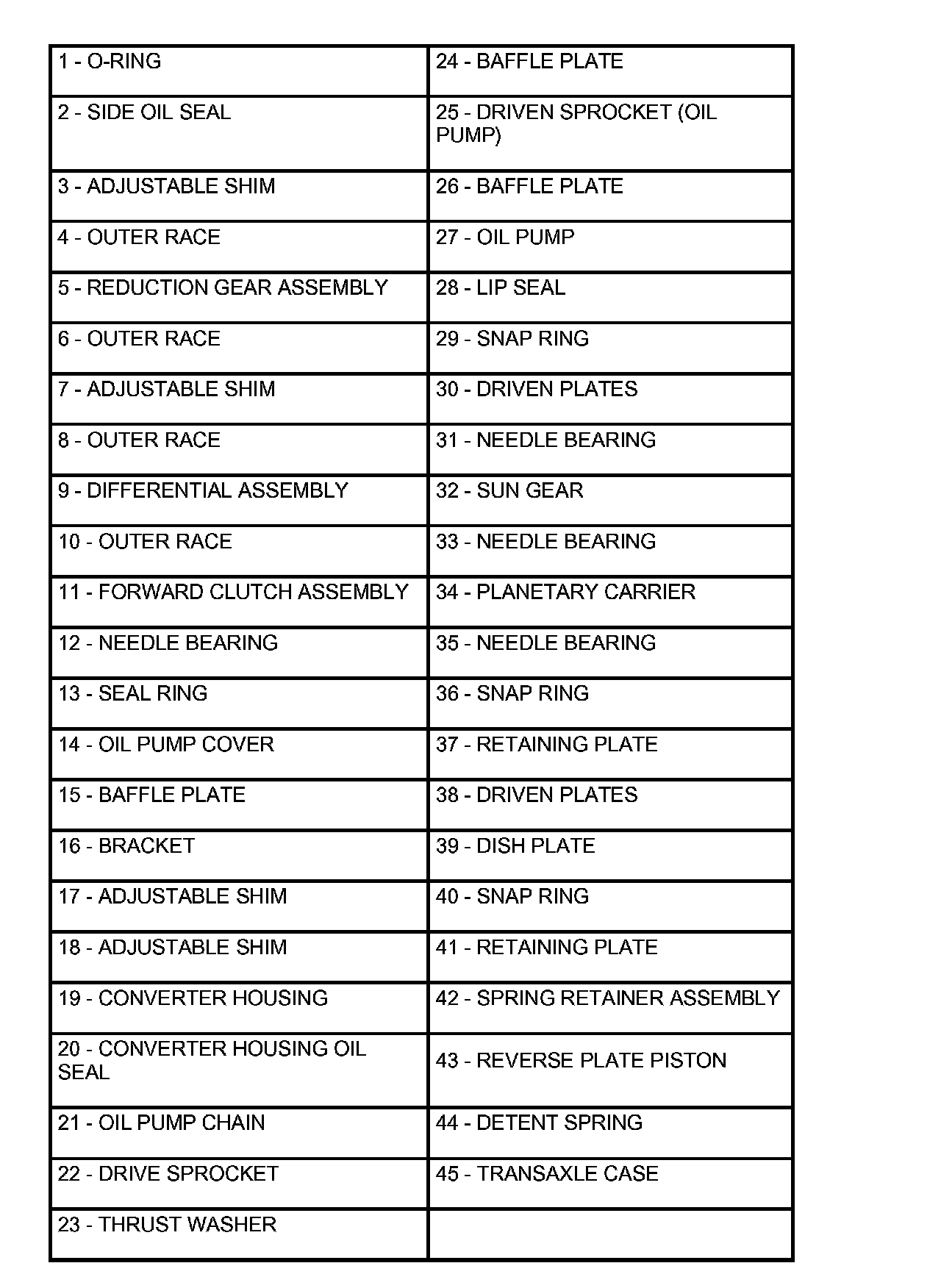 29. Remove the reduction gear assembly (1) from the transaxle case.