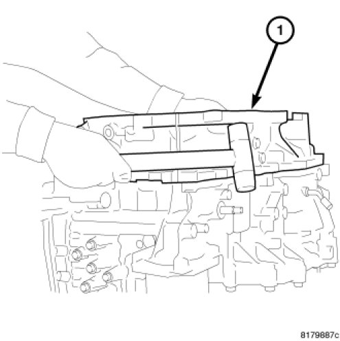 40. Remove the oil pan gasket (1) from the transaxle case.