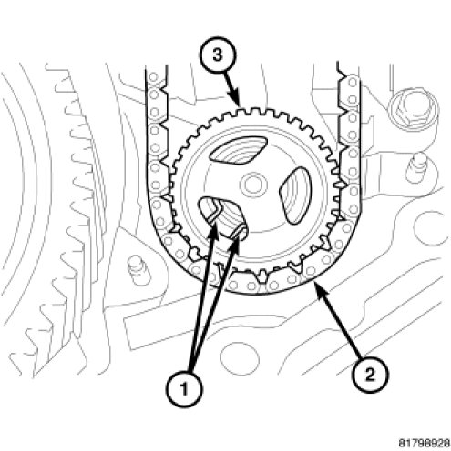 78. Remove the bolts (2) that hold both sheaves to the case (1).