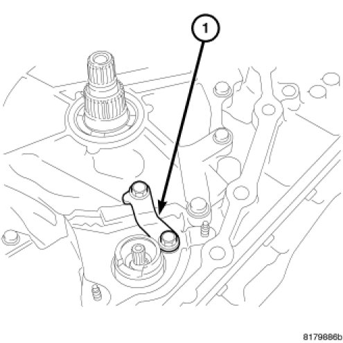 49. Remove the bolt holding the detent spring (1) to the transaxle case.
