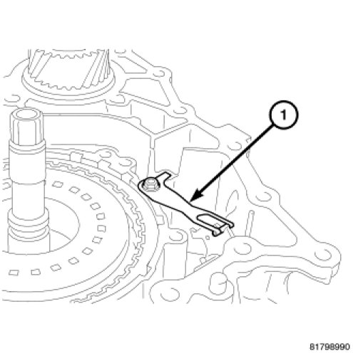 31. Remove the bolts holding the bracket (1) to the oil pump cover and the transaxle.