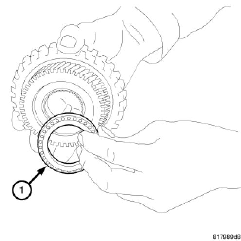 75. Try removing the reverse brake piston from the transaxle case by hand if unable to remove by hand, apply compressed air to the fluid passage (1). and remove the reverse brake piston from the transaxle case.