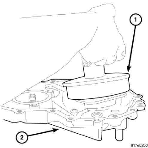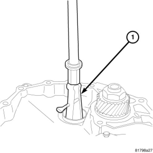 66. Remove and discard the lip seal (1) from the transaxle case.