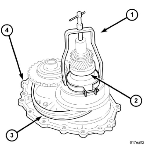 17. Remove the converter housing (1) by tapping with plastic hammer.