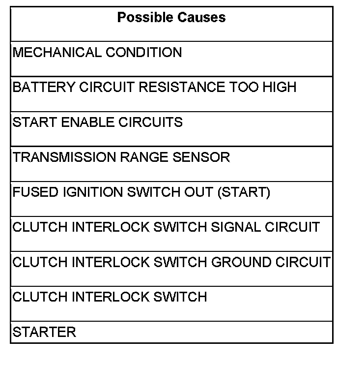 - Repair the Clutch Interlock Switch signal circuit.