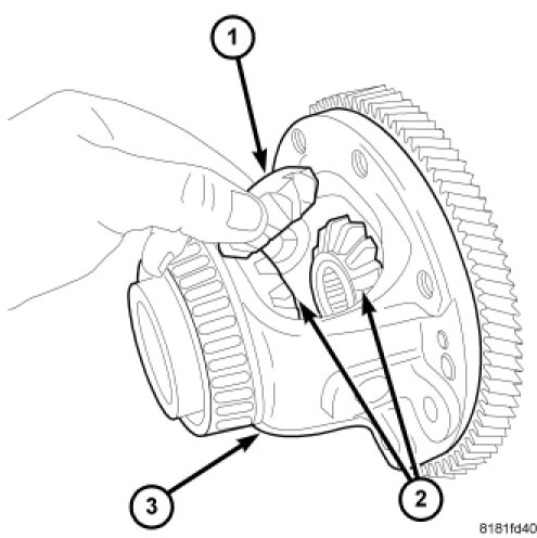 7. Remove the side gears (2) and shims (3) from the carrier.