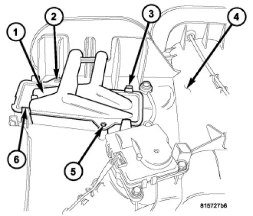 2. Engage the four retaining tabs (3 and 6) that secure the heater core to the HVAC housing.