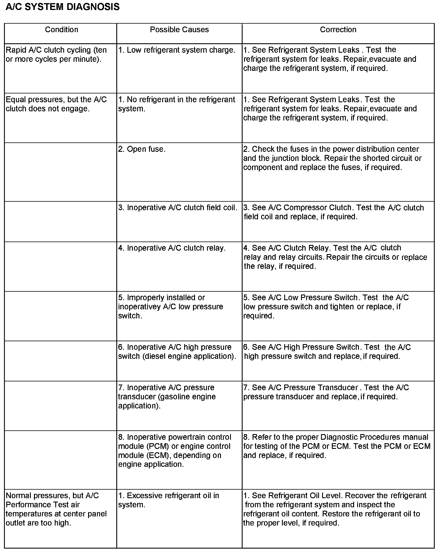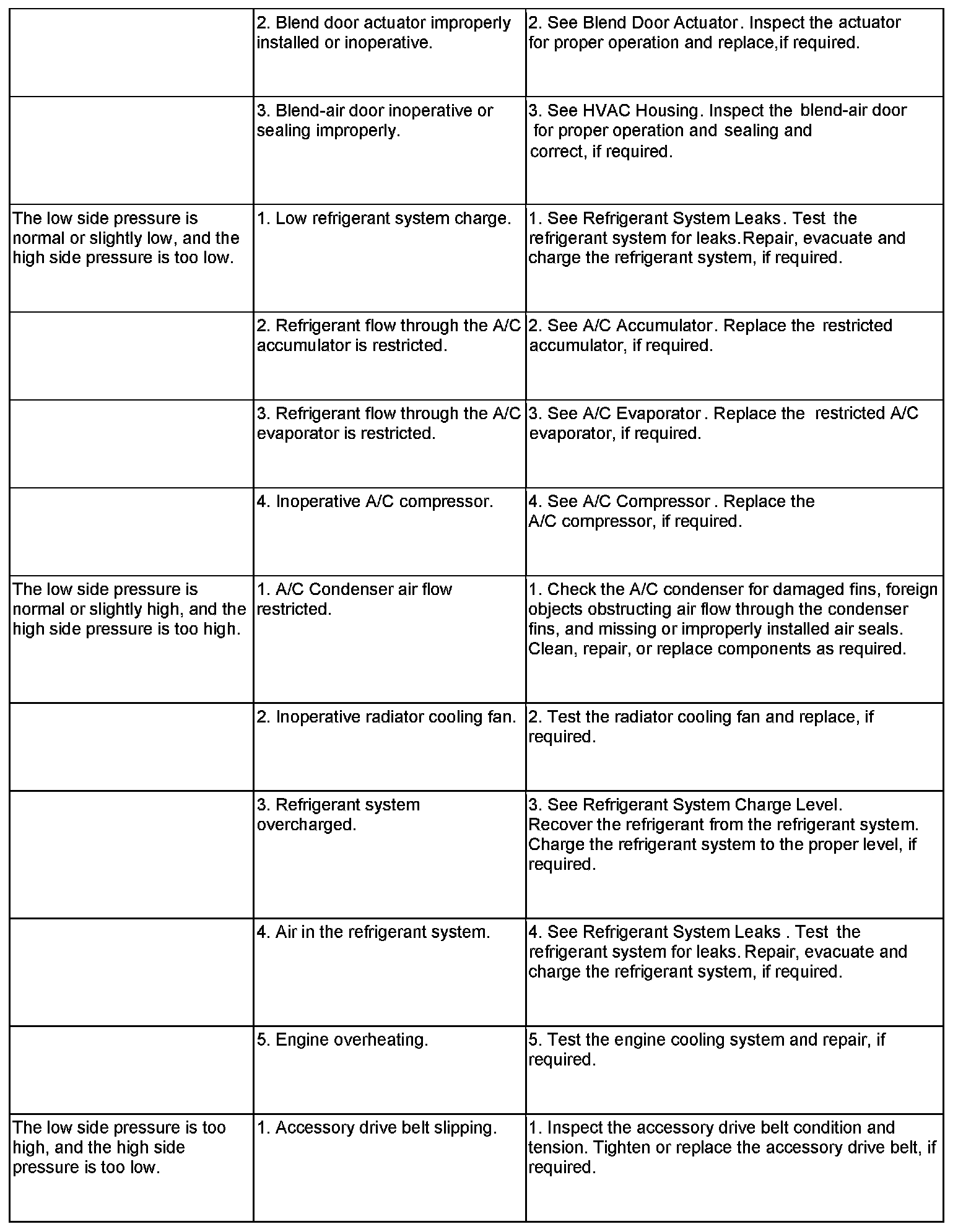 - A/C-heater controls set to Recirculation mode (max-A/C), full cool, panel mode, high blower and with A/C compressor engaged. If the A/C compressor does not engage, see the A/C System Diagnosis chart.