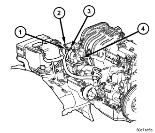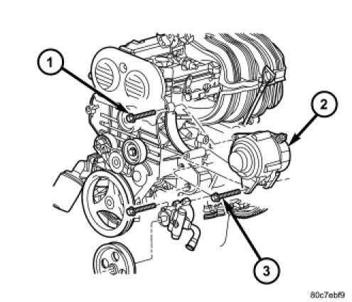 6. 2.4L Engine: Remove 2 generator mounting bolts (1) and (2).