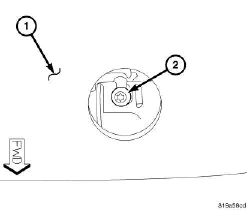 NOTE: Due to the linear nature of the headlamp cutoff, a properly aimed low beam headlamp will project the top edge of the high intensity pattern on the alignment screen from the horizontal line to 50 millimeters (2 inches) below the horizontal line for domestic market vehicles, or to 125 millimeters (5 inches) below the horizontal line for export market vehicles. No horizontal (right/left) adjustment is required for this headlamp beam pattern in domestic market vehicles. Export market vehicles have a second horizontal (right/left) adjustment screw provided. The high beam pattern will be correct when the low beams are properly aimed.
