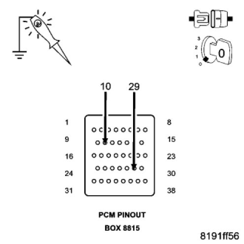 CAUTION: Do not probe the PCM harness connectors. Probing the PCM harness connectors will damage the PCM terminals resulting in poor terminal to pin connection. Install Miller Special Tool #8815 to perform diagnosis.