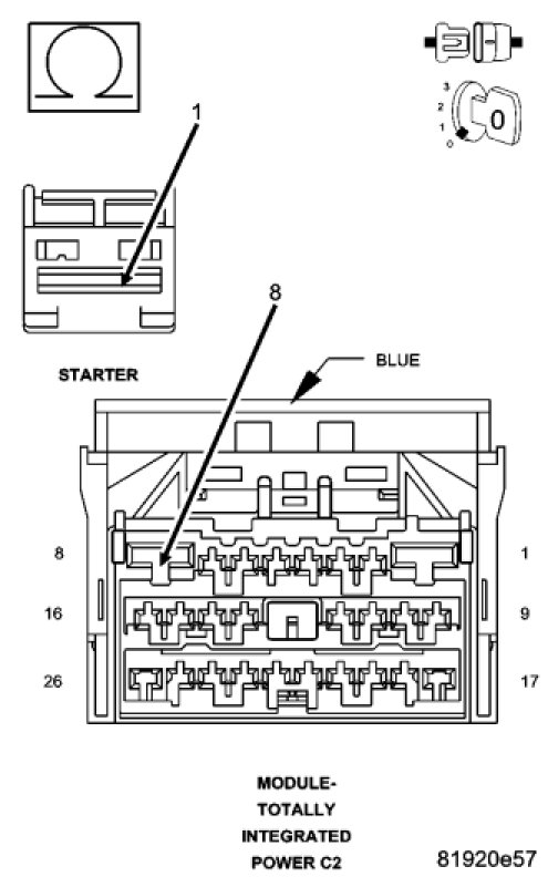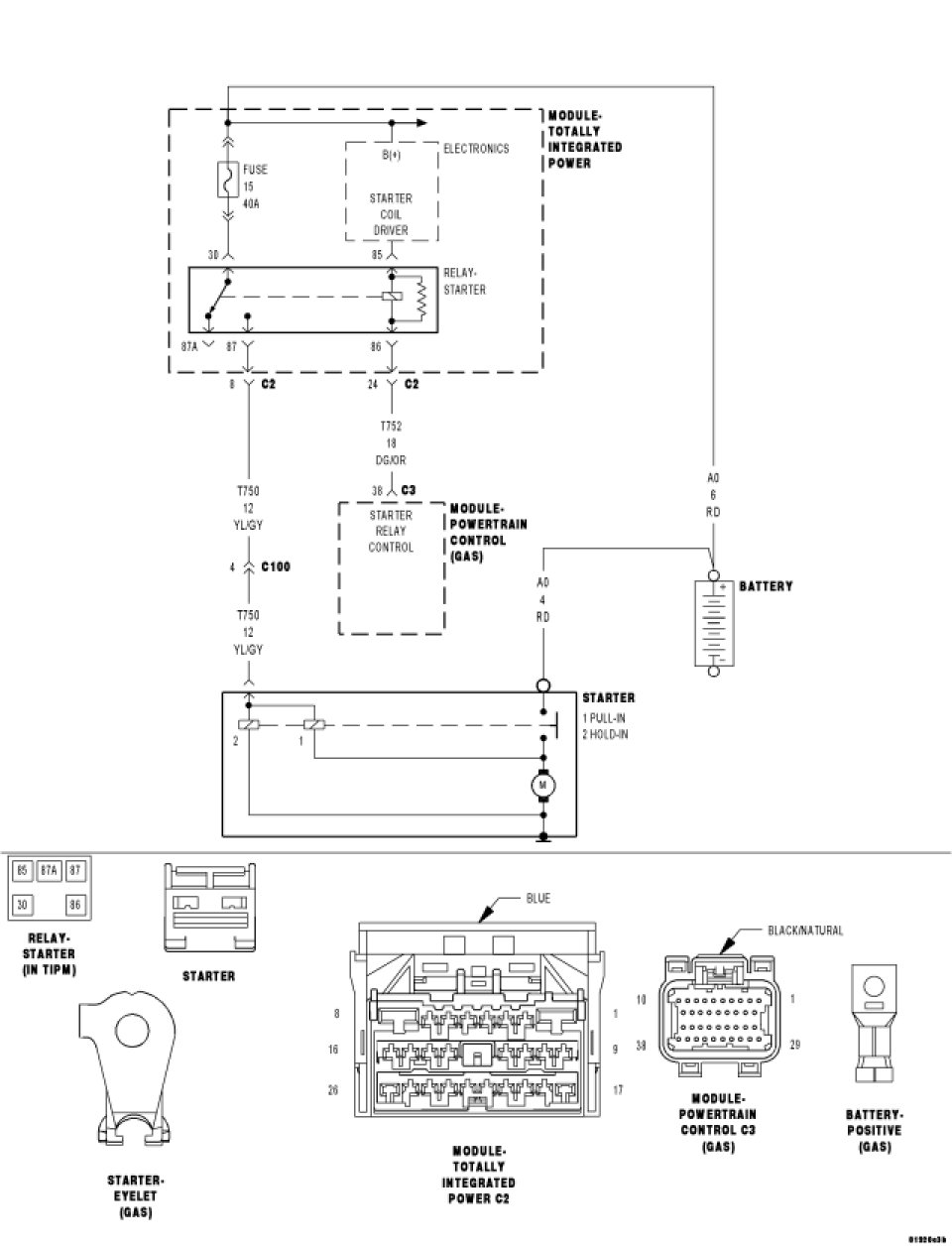 - Repair the open in the (T750) Starter Control Output circuit.