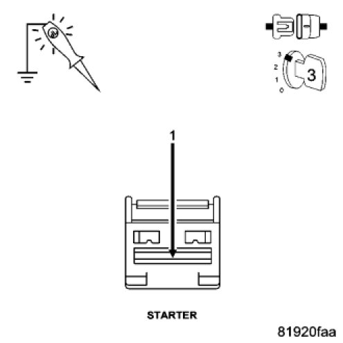 NOTE: The Stater Solenoid harness connector must remain disconnected at this time.