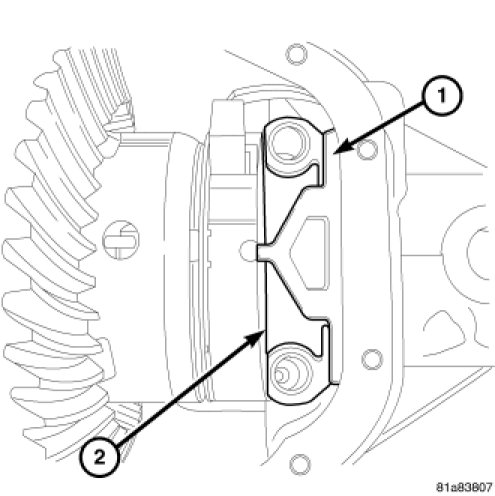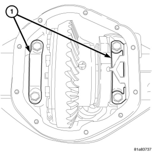 7. Install bearing caps (2) in their original locations and coil anti-rotation bracket (1).
