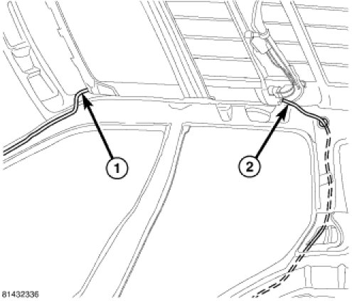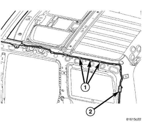9. Connect the front (1) and rear (2) drain tubes to the sunroof.