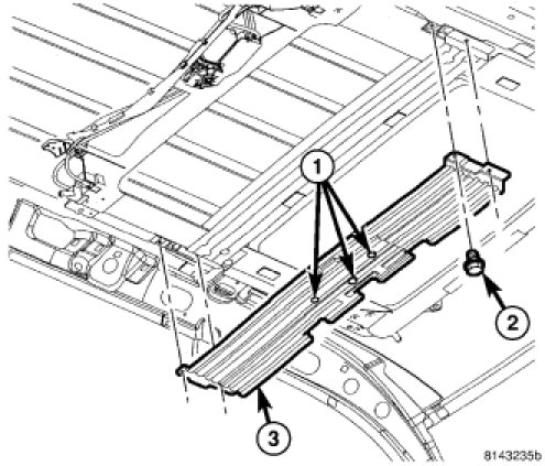 5. Install the DVD support bracket (3), if equipped.
