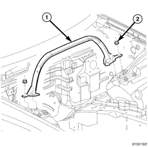 2. Remove the strut tower support (1).