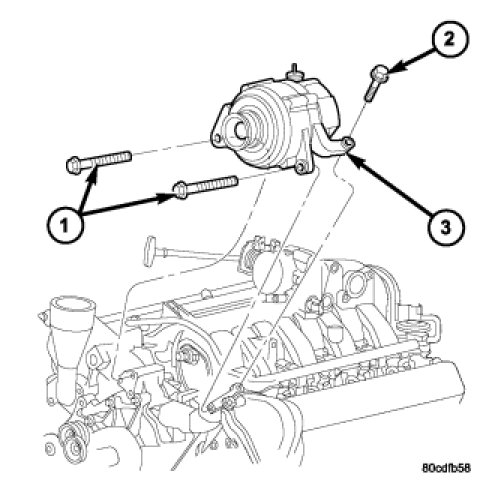 9. Remove power steering pump with lines attached and secure away from engine.