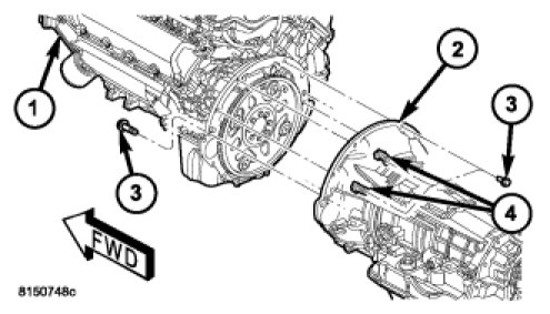 36. Remove transmission bellhousing to engine bolts (3).