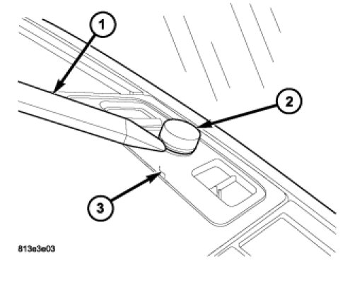 2. Using trim stick C-4755 or equivalent (1), gently pry between both sides of the sun sensor (2) and the instrument panel (3) to release the snap clip retainers located at the front of the sensor near the windshield.