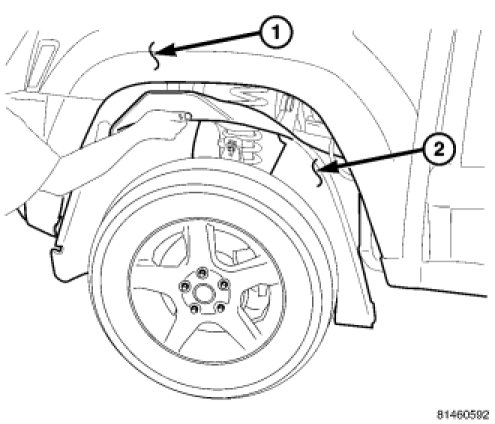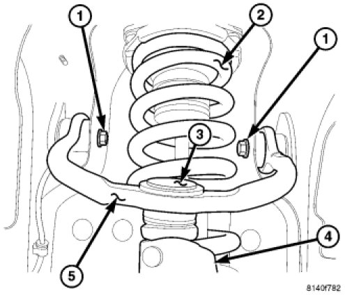 6. Remove the nut and bolt (1) securing the upper control arm (5) to the body.