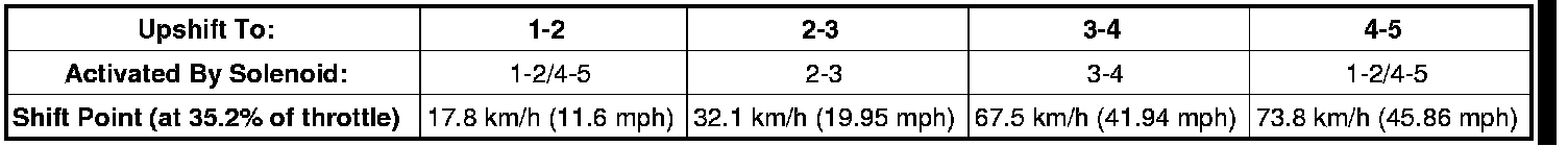 Based on how aggressive the driver is, the TCM moves up the shift so that the present gear is held a little longer before the next upshift. If the driving style is still aggressive, the shift point is modified up to ten steps. If the driving returns to normal, then the shift point modification also returns to the base position.