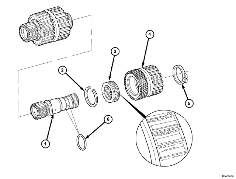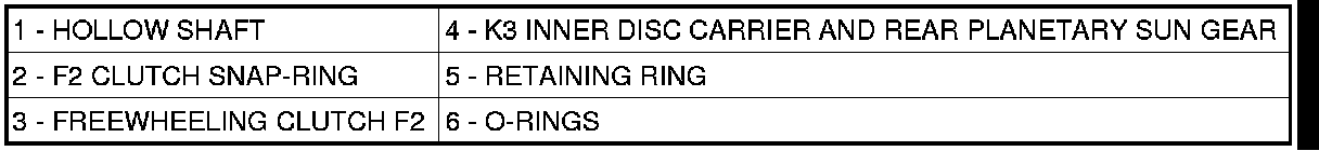 5. Verify proper operation of the freewheeling clutch F2. When the assembly is held with the F2 clutch snap-ring upward, it should be possible to rotate the hollow shaft counter-clockwise.