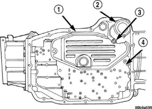 9. Remove the screw holding the primary oil filter (1) to valve body.