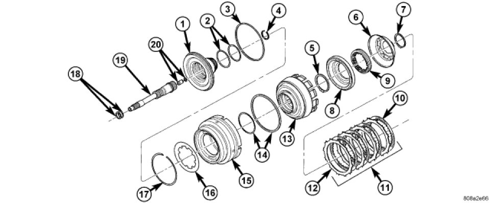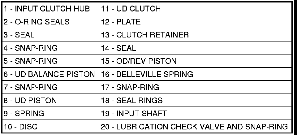 20. Separate OD/reverse piston (15) from input clutch hub retainer (13).