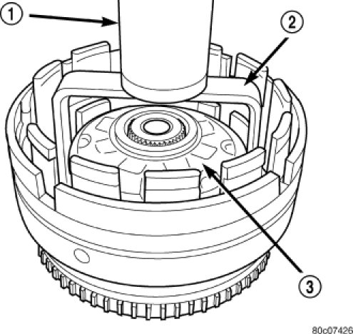 5. Remove the overdrive hub (2) from the input clutch retainer.