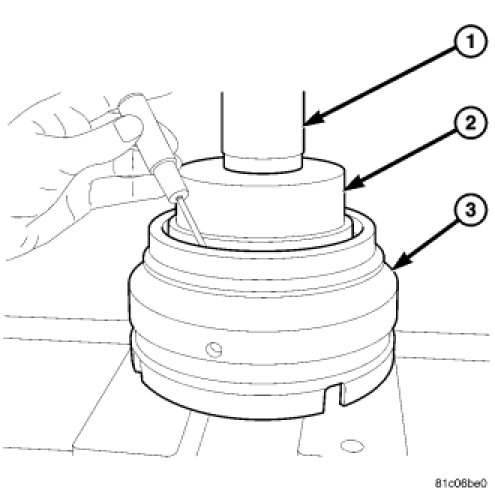 15. Using Spring Compressor 8251 (2) , compress the UD balance piston (3) and remove the snap-ring from the input clutch hub.