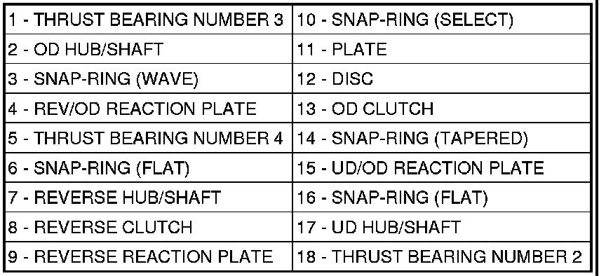 NOTE: The overdrive friction discs and steel discs are thicker than the matching components in the underdrive and reverse clutches.
