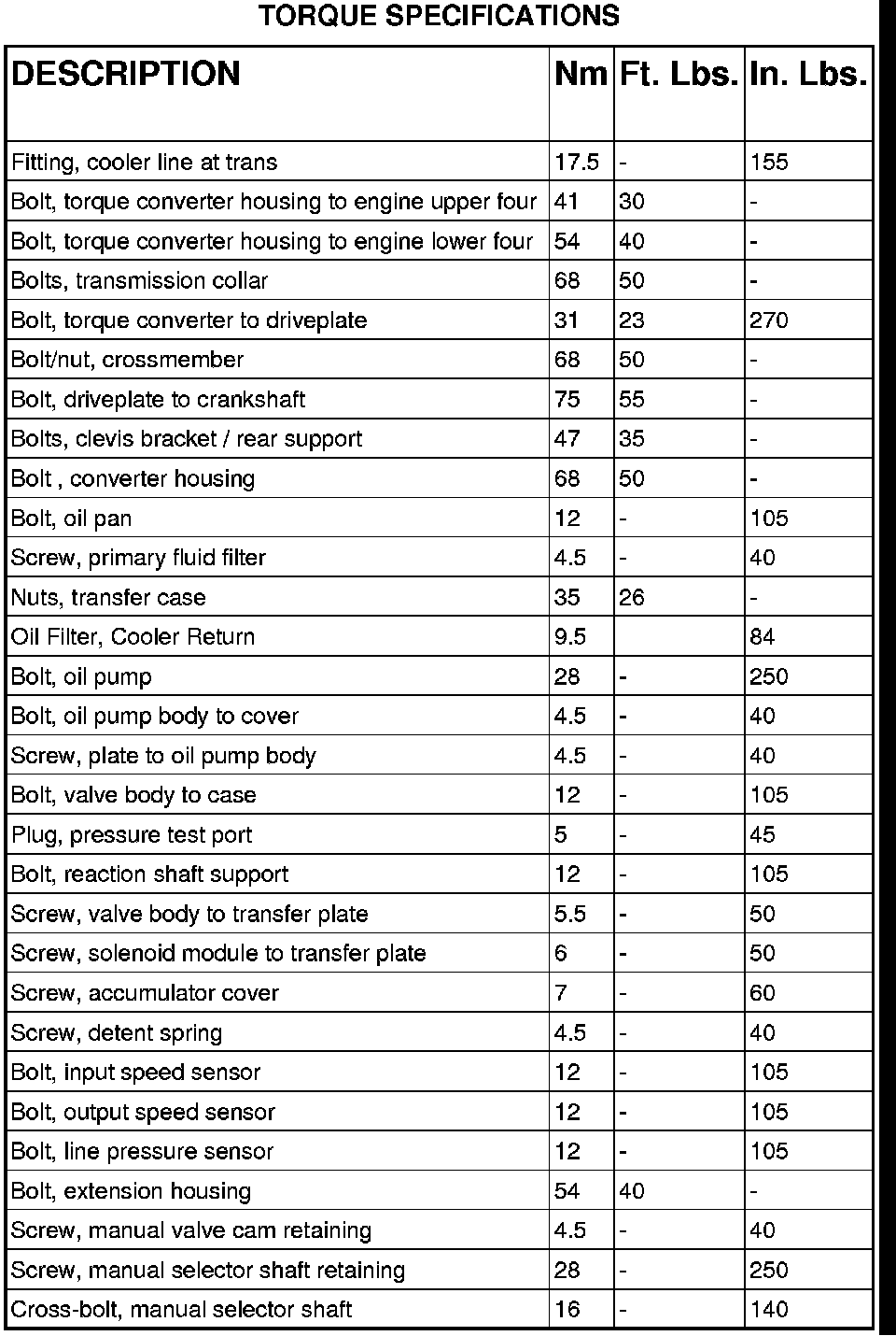 TORQUE SPECIFICATIONS