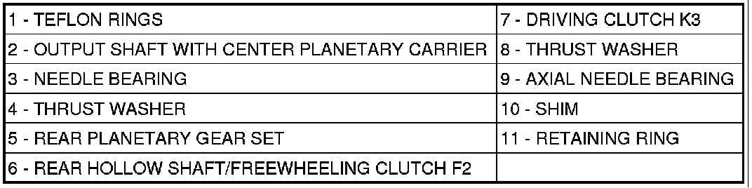 4. Remove rear tubular shaft/freewheeling clutch F2 (6) from output shaft.