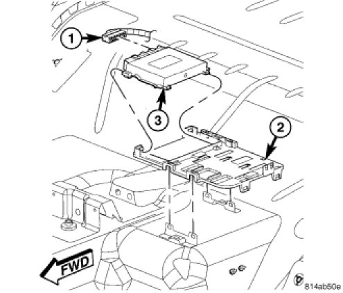 4. Using a trim stick (special tool #C-4755) or equivalent, gently pry back on the retaining tabs on the mounting plate (2) and remove module.
