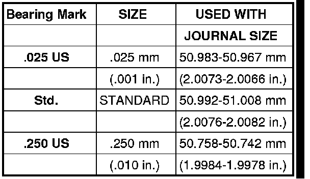 8. If bearing-to-journal clearance exceeds the specification, determine which service bearing set to use, using the chart above.