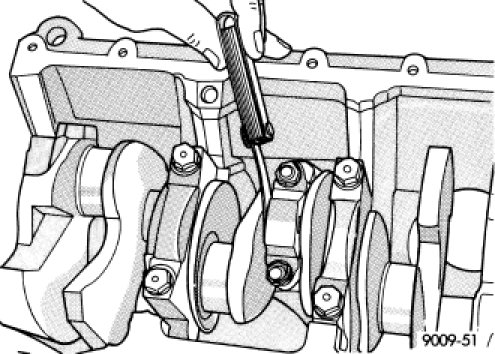 Slide snug-fitting feeler gauge between the connecting rod and crankshaft journal flange. Refer to Engine Specifications for the proper clearance. Replace the connecting rod if the side clearance is not within specification.