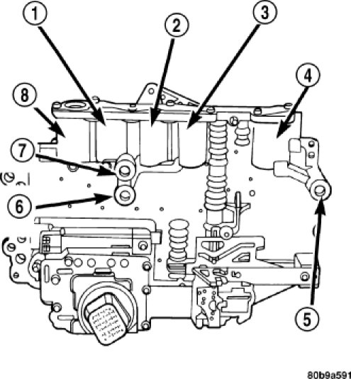 Inspect all the fluid seals on the valve body. Replace any seals that are cracked, distorted, or damaged in any way. These seals pass fluid pressure directly to the clutches. Any pressure leak at these points, may cause transmission performance problems.
