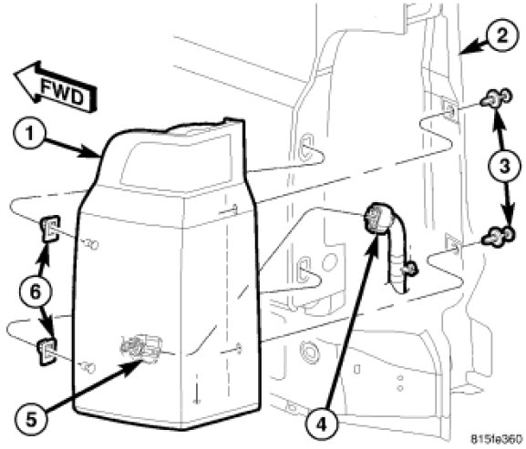 1. Check to be certain that the two plastic grommets (6) are in good condition and properly installed in the quarter outer panel.