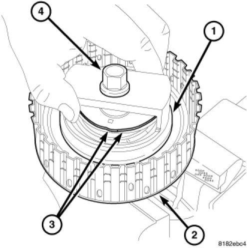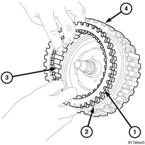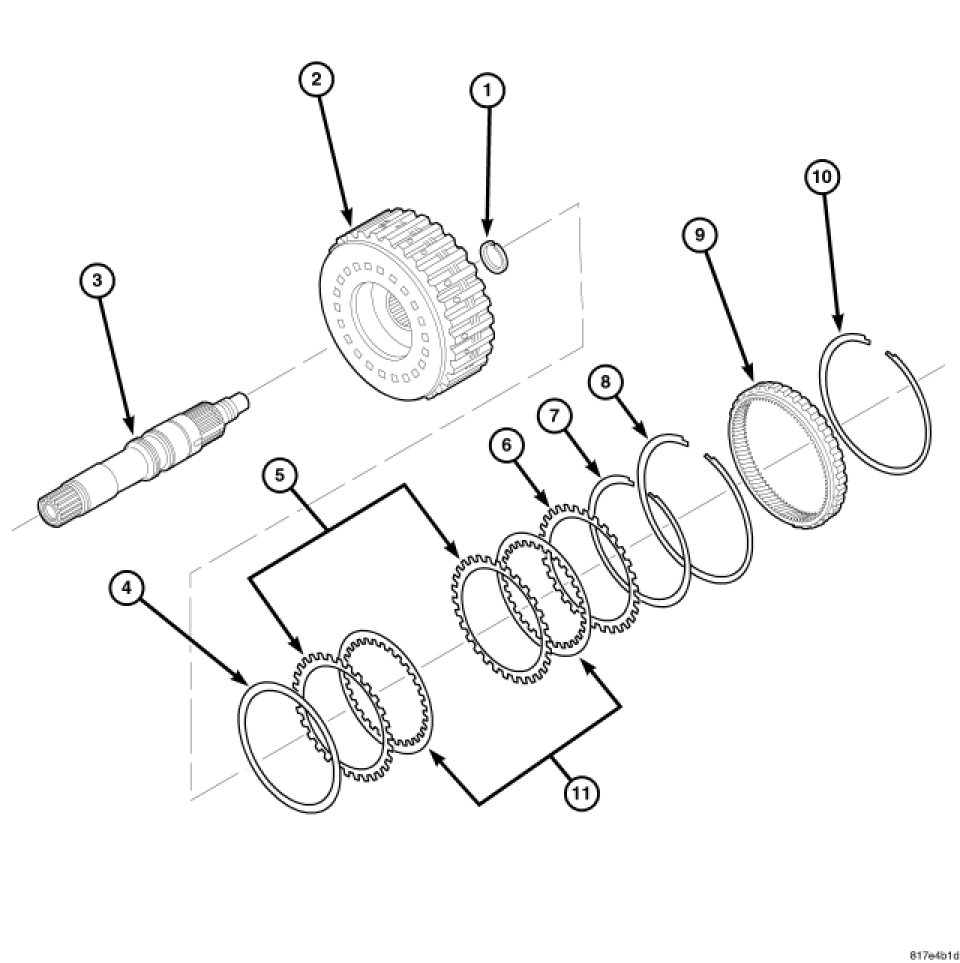 4. Remove the retaining plate (1), the drive and driven plates (3), and the dish plate (2) from the forward clutch drum (4).
