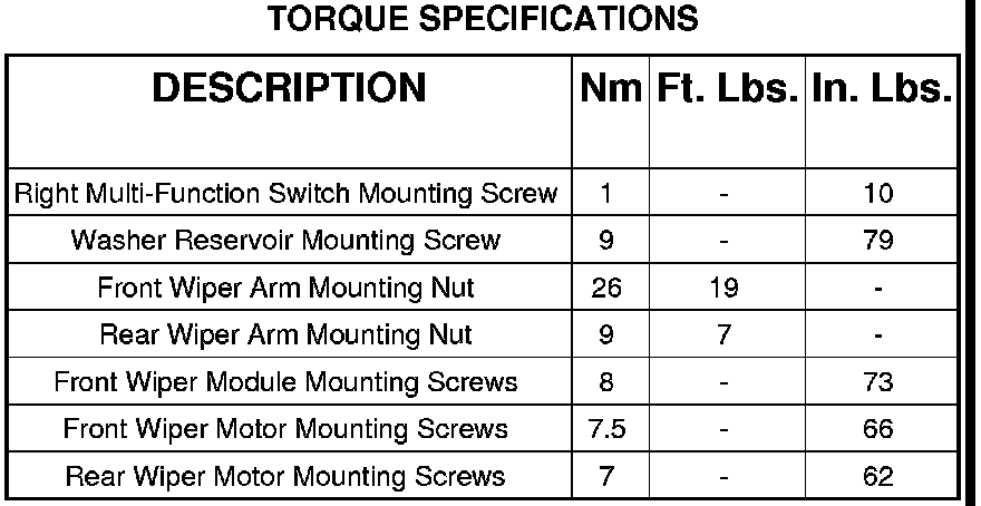 Wiper and Washer Systems: Specifications