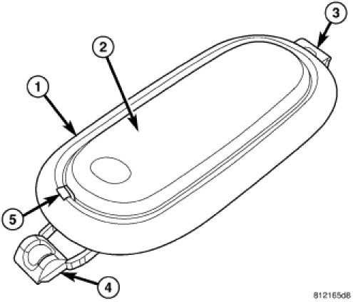 4. Slide the notched end of the housing into the mounting hole far enough to engage the lens hinge/retainer (3) into the opposite side of the hole in the headliner.
