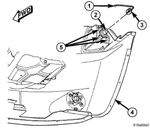 9. Remove the three screws (5) that secure the lamp to the back of the front fascia.