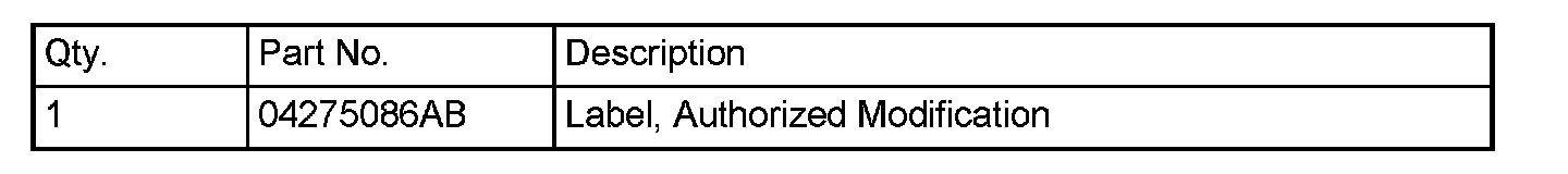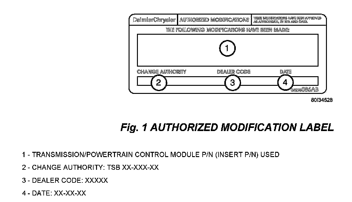 6. Type the necessary information on the "Authorized Modification Label p/n 04275086AB and attach near the VECI label (Fig 1).