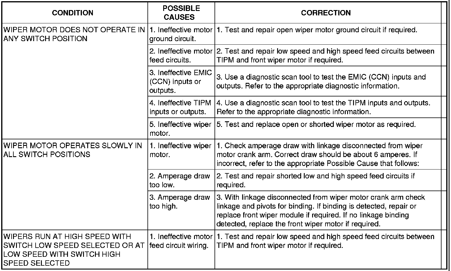 NOTE: The front wiper and washer switches are integral to the right multi-function switch. The right multi-function switch is hard wired to the left multi-function switch/Steering Control Module (SCM), which communicates with the ElectroMechanical Instrument Cluster (EMIC)/Cab Compartment Node (CCN) over the Local Interface Network (LIN) data bus. Before performing any of the following tests, determine whether the other functions of the right and left multi-function switch/SCM are operational. If only the right multi-function switch functions are inoperative, test and repair the right multi-function switch or the jumper harness between the right and left multi-function switches before attempting to repair the Front Wiper and Washer System. If both the right and left multi-function switch/SCM functions are ineffective, diagnose and repair that problem before attempting to repair the Front Wiper and Washer System.