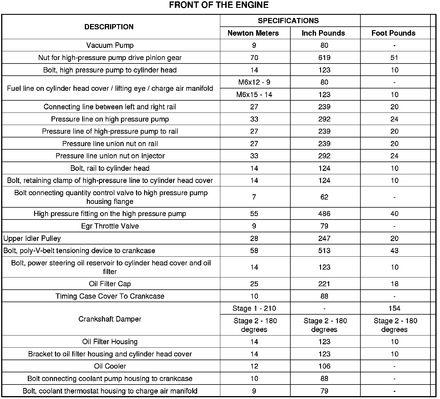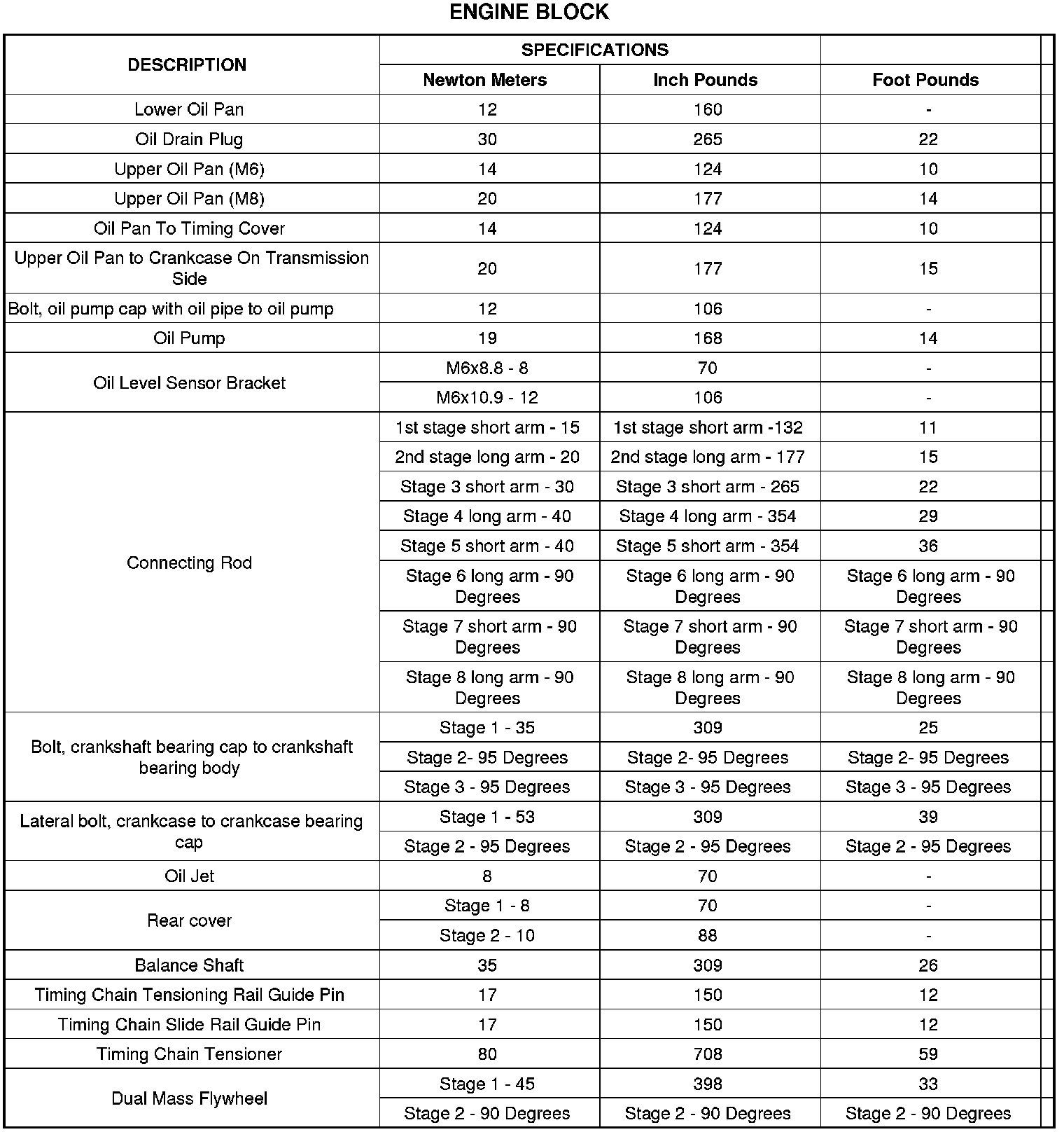Torque Specifications