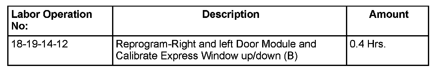 This bulletin involves selectively erasing and reprogramming the Door Modules (Driver & Passenger) with new software and calibrate the express window up/down feature.