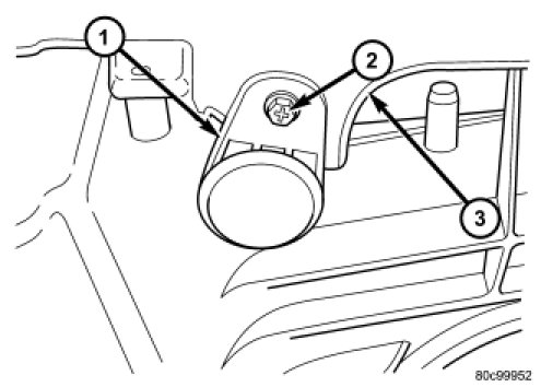 4. Install and tighten the screw (2) that secures the integral mounting tab of the courtesy lamp to the lower instrument panel. Tighten the screw to 2 Nm (17 in. lbs.).